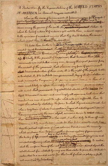 出處: "Original Rough Draught of the Declaration of Independence" Thomas Jefferson, June 1776. American Treasures of the Library of Congress: Top Treasures.