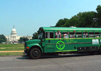 來自新罕布希爾州達特默思大學的大學生們搭乘一輛經過改裝以植物油為燃料的巴士來促進可持續能源的使用。