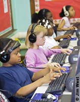 密西根州底特律市一所小學裡的電腦教室上課情形。 |