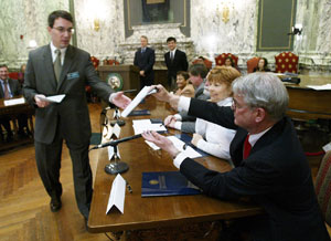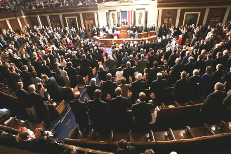 2005年,第109屆國會的議員們在國會山眾議院會議大廳宣誓就職。