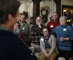 新罕布什爾州的選民在2008年預選季節初期傾聽民主黨總統競選人愛德華茲(John Edwards)闡述他的設想。