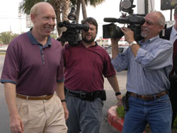 在多層次的聯邦體制下,對本地居民而言,地方選舉和全國性選舉同樣重要。圖為休斯頓市長候選人華里特(Bill White)召開記者會。