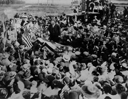 二十世紀曾出現過幾位第三方總統候選人。他們雖然未能贏得選舉,卻對總統選舉產生了影響。圖為西奧多·羅斯福(Theodore Roosevelt)總統在1912年對" 雄鹿黨" (Bull Moose Party)支持者發表演說。