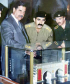 ![]() 薩達姆.侯賽因查看阿拉伯復興社會黨2002年贈送的生日禮物 ─ 巴士拉門模型。 (美聯社照片/伊拉克通訊社) |
