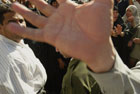 ![]() 伊拉克官員向一名攝影師示意不要拍攝示威者。示威者的在押親人在薩 達姆.侯賽因10月21日頒布大赦令後下落不明。(美聯社照片/Jerome Delay) |